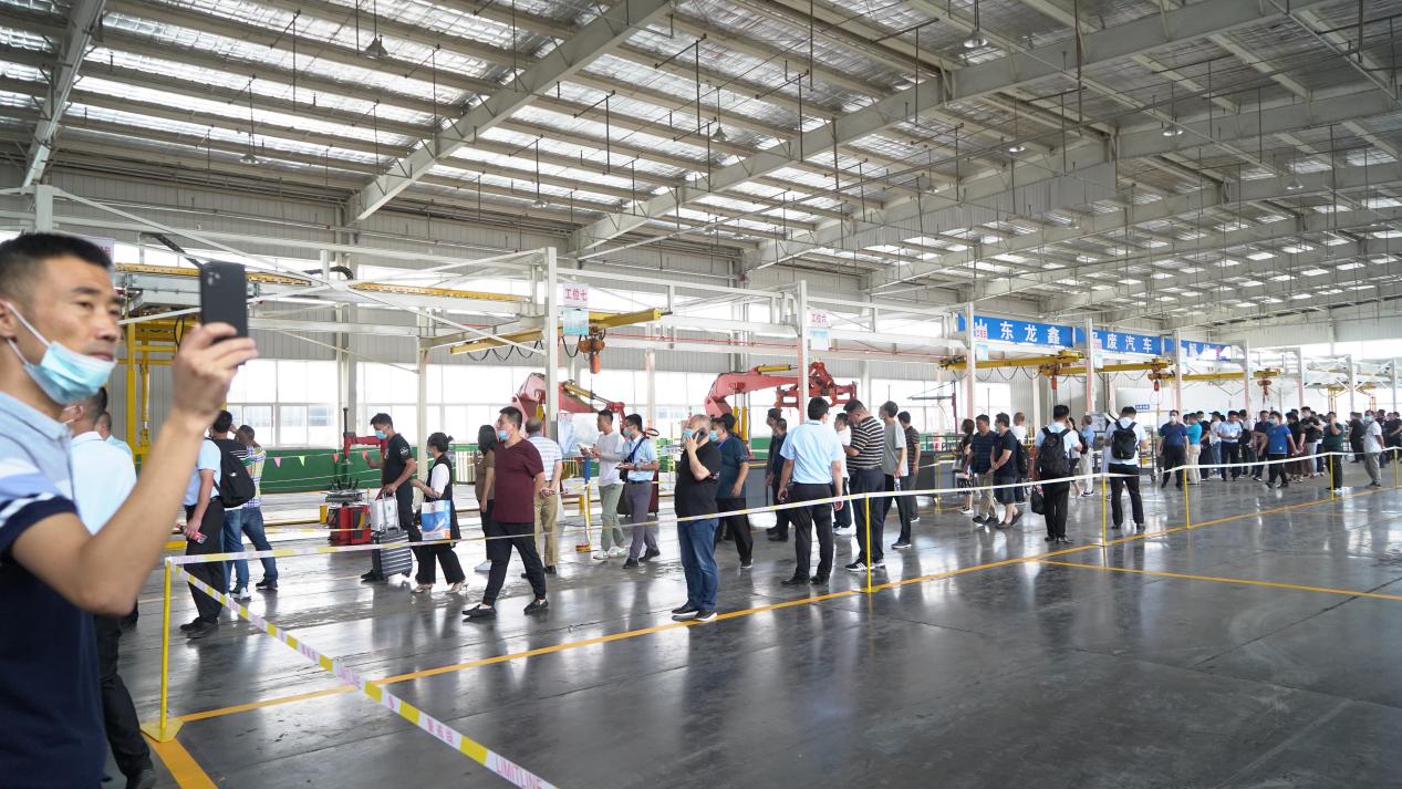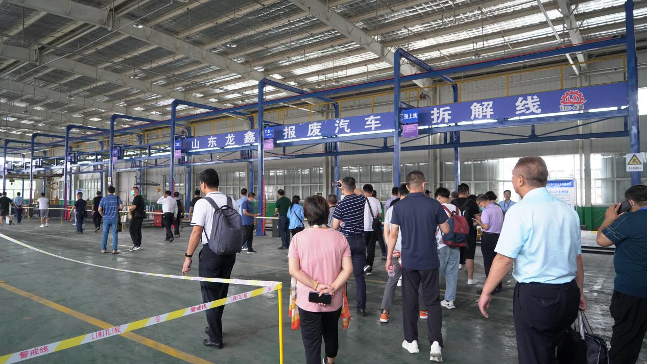次日上午,參會的相關領導及企業代表到達青島德鑫控股集團有限公司,在青島德鑫控股集團有限公司總經理劉兆濤及山東龍鑫環保設備有限公司總經理楊洪杰的陪同下,參觀山東龍鑫環保設備有限公司報廢機動車拆解有關設備。在參觀過程中,領導們以及企業代表對山東龍鑫環保設備有限公司自主研發的鏈板式報廢機動車拆解線和地軌式報廢機動車拆解線實操性表示認同以及肯定。同時表示山東龍鑫研發的產品,不管是生產工藝還是產品質量上,都有較大的優勢,對作為報廢機動車拆解設備生產的重點企業充滿了期待。